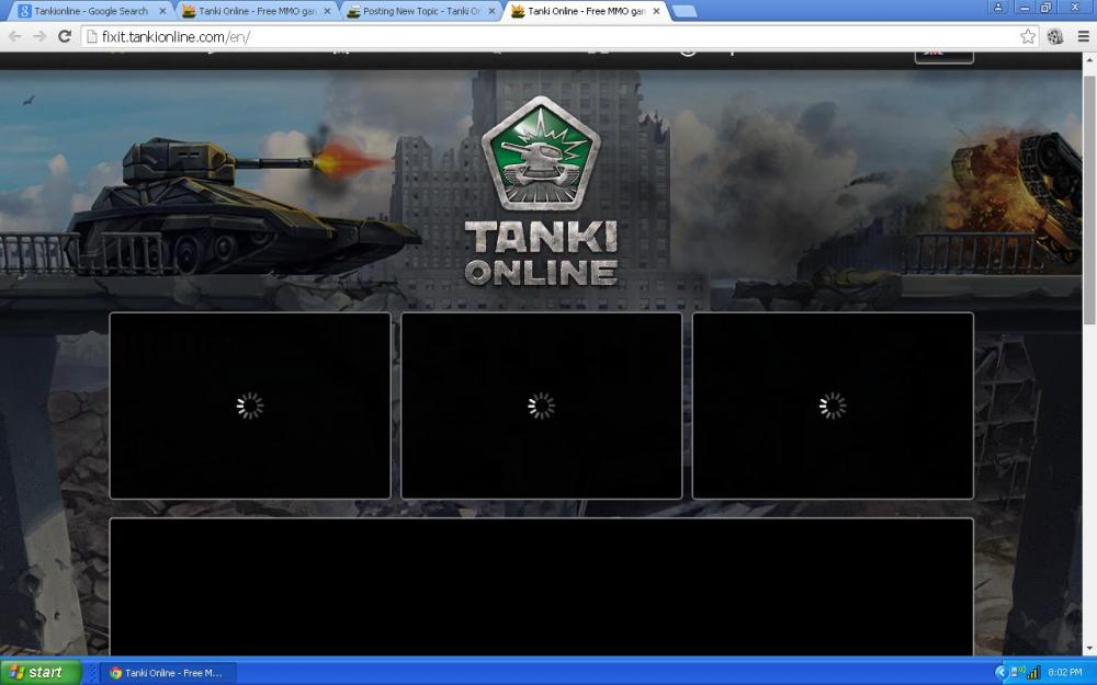 Hi , I am using this account from 2012 .It went well . But now a days it is not loading at all. Before this problem I play 2 to 3 hrs daily. Now i cant even log in. I sit simply watching the loading page and close laptop with frustration . . My only hobby is watching tanki online videos in youtube. Please do the needful I have tried "http://fixit.tankionline.com/en/" also but no use. Thanks, Arun - "SHAVE.A"