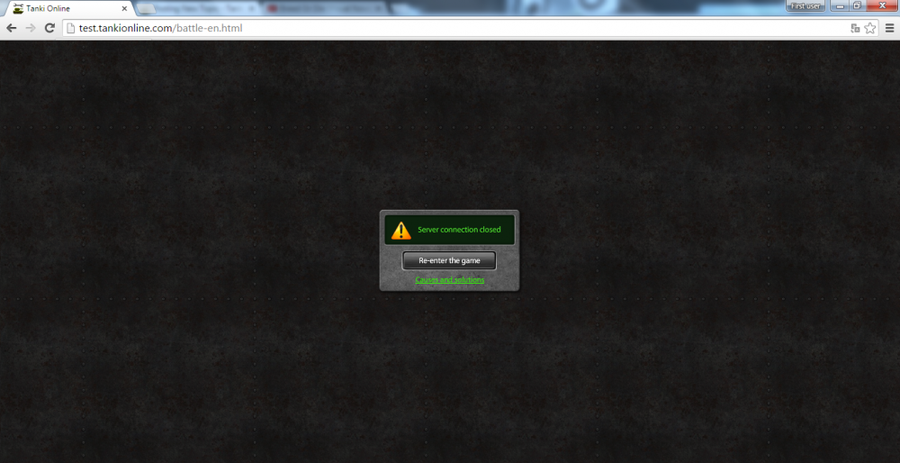 "Server Connection Closed" message on test server