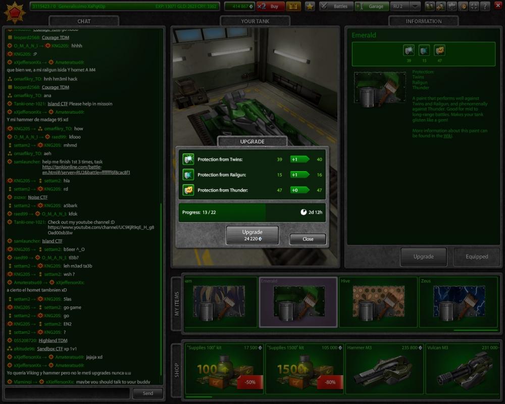 Thunder protection (From 42% to 50%) - You micro-upgraded the paint for 13 steps and reached Thunder - 47%, Twins - 39%, Railgun - 15%.