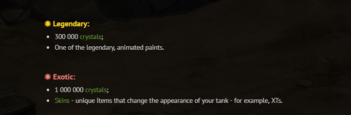 So as I understood, when you open 15 containers, in your 15th  (exotic) cont you will get: 1,000,000 (a promo code)/Rail XT /Hornet XT. I am now saving up for 15 conts to get an XT, so when I open them don't want to be frustrated. Please tell me if what I think is true about 1m. crystals, or the XTs.