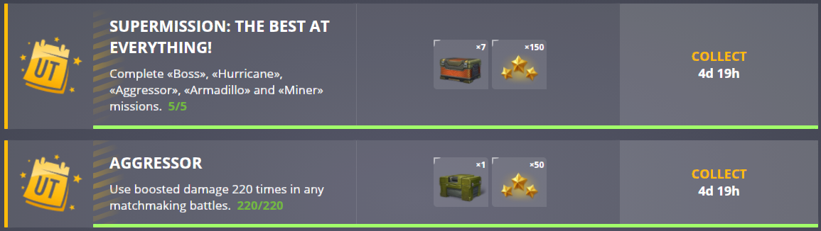 I play only for missions, so I "collect" the special missions tomorrow. Only 162/220 damage and 197/210 armors and I'm done.