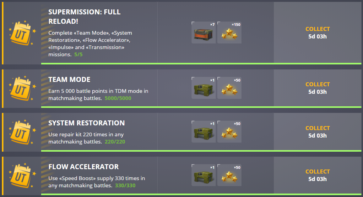 Of course, you can't forget about Ultra Containers, which you can earn for completing various special missions, as well as purchasing in the shop.
